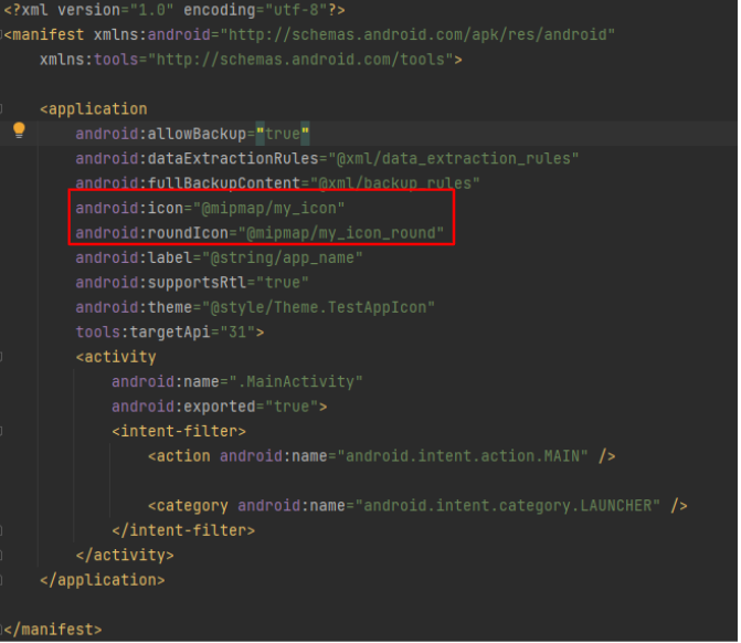 AndroidManifest.xml 에서 android:icon , android:roundIcon 을 자신이 추가한 Icon으로 변경