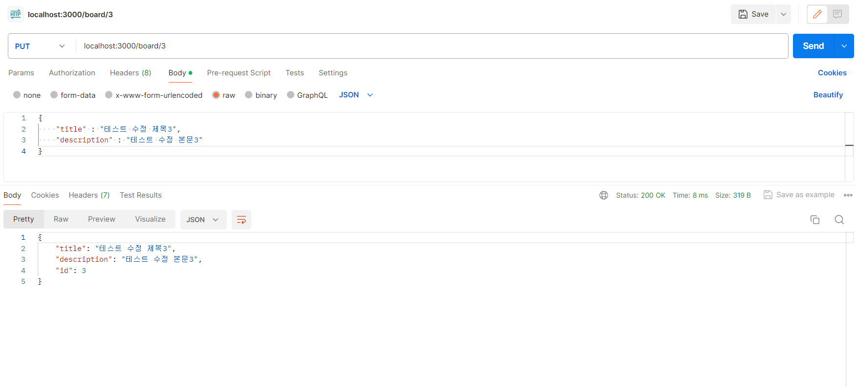 3번 게시물은 수정이 되고 1번 게시물은 삭제가 된걸 볼 수 있습니다.