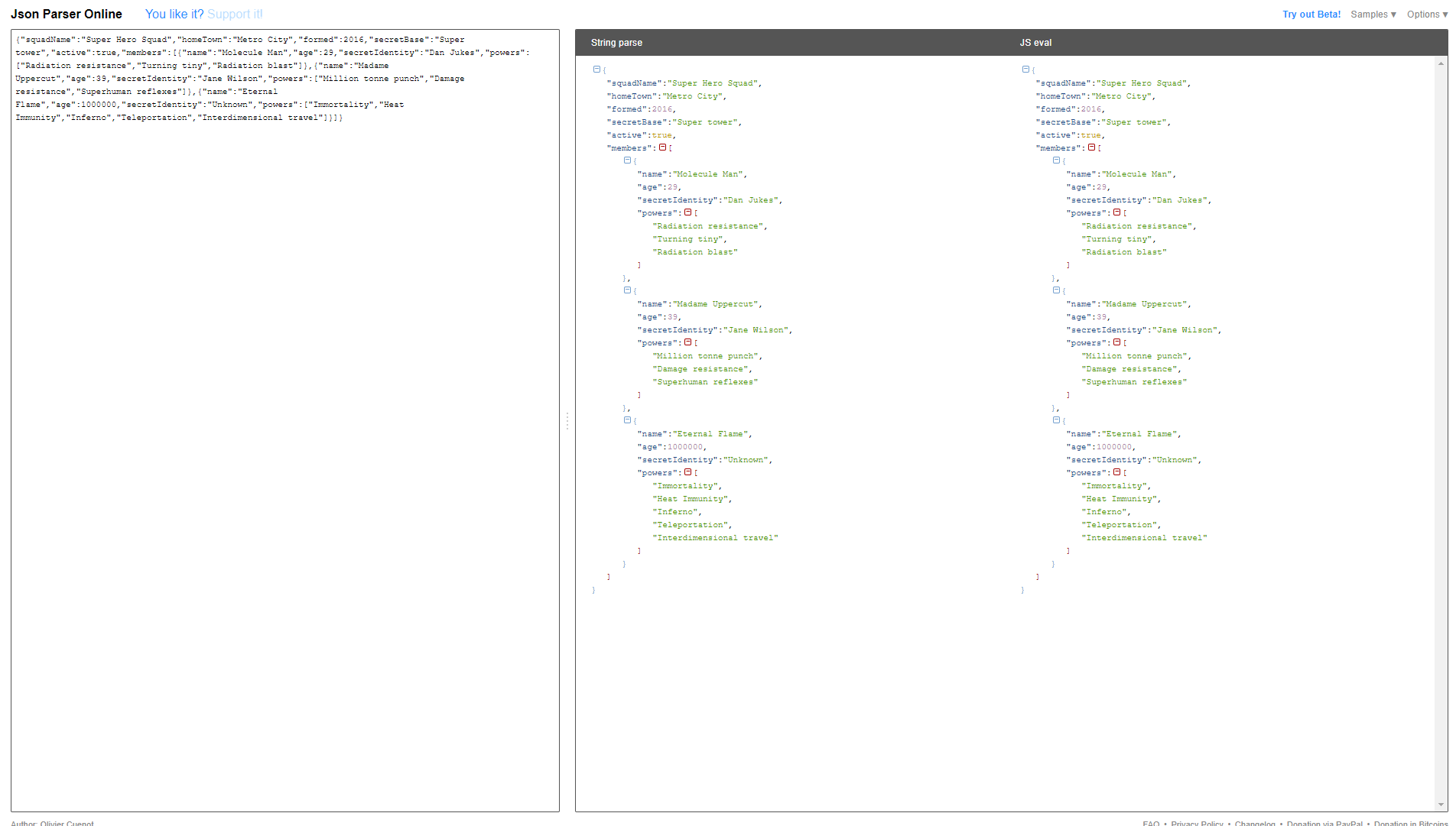 이 때 데이터를 쉽게 보고 싶다면 json파서를 이용할 수 있습니다.
