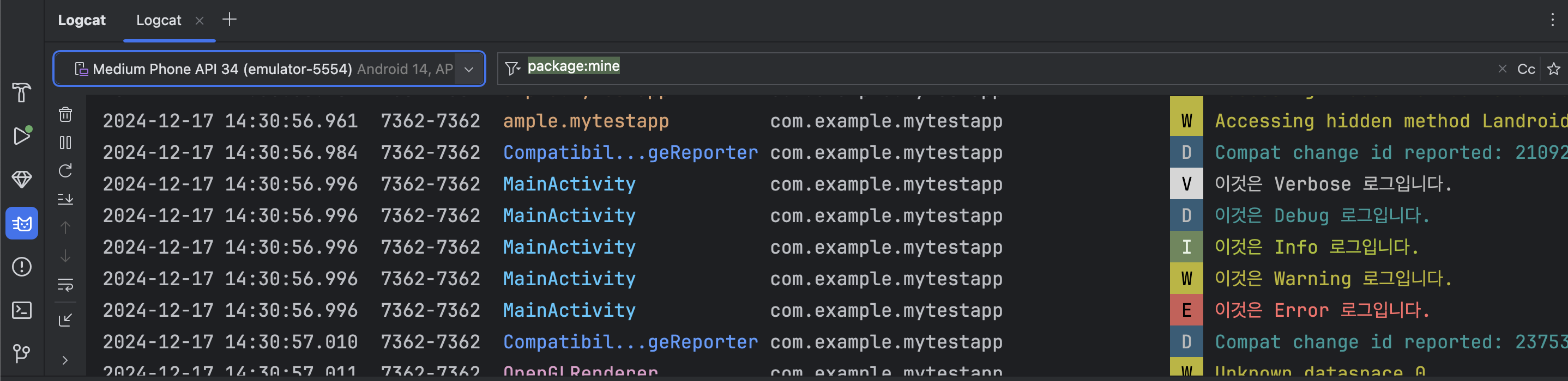 Log.v(TAG, "이것은 Verbose 로그입니다.");