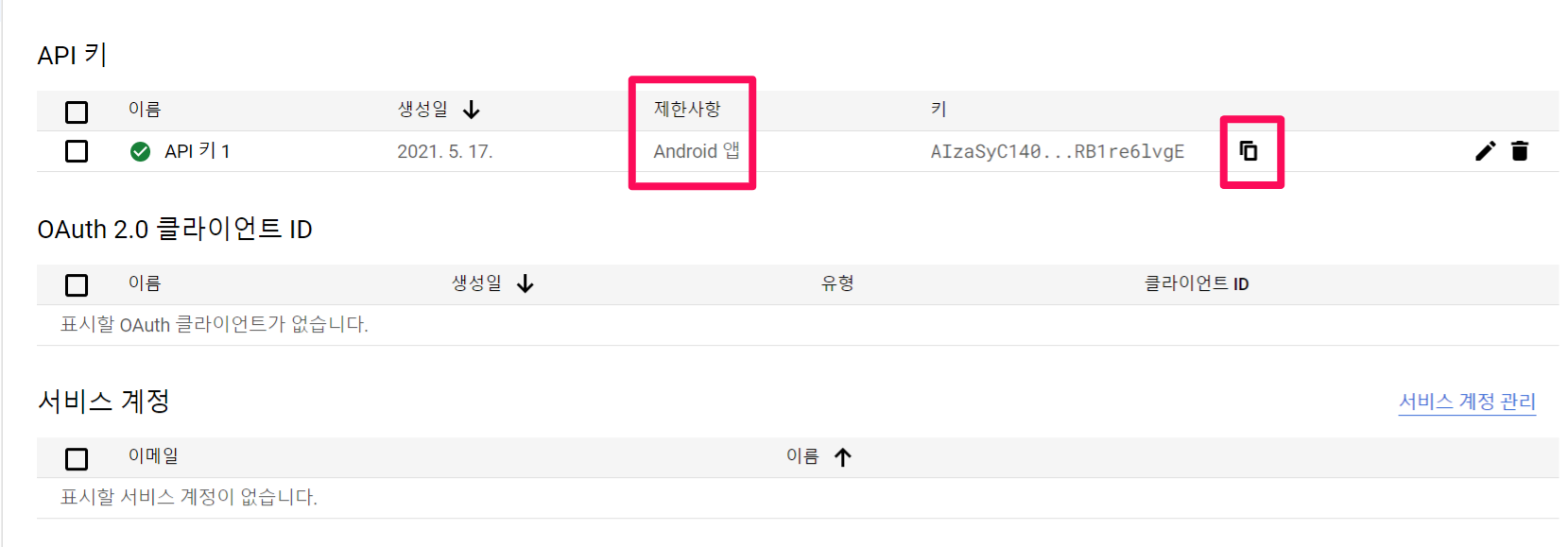 구글 플레이 서비스에 접근 하기위해서는 API 키가 필요합니다.