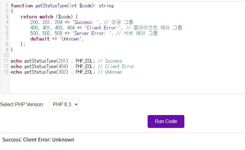 // 위 코드는 'delete' 값을 처리할 수 없으므로 치명적인 에러(Fatal error: UnhandledMatchError)를 발생시키고 실행이 중단됩니다.