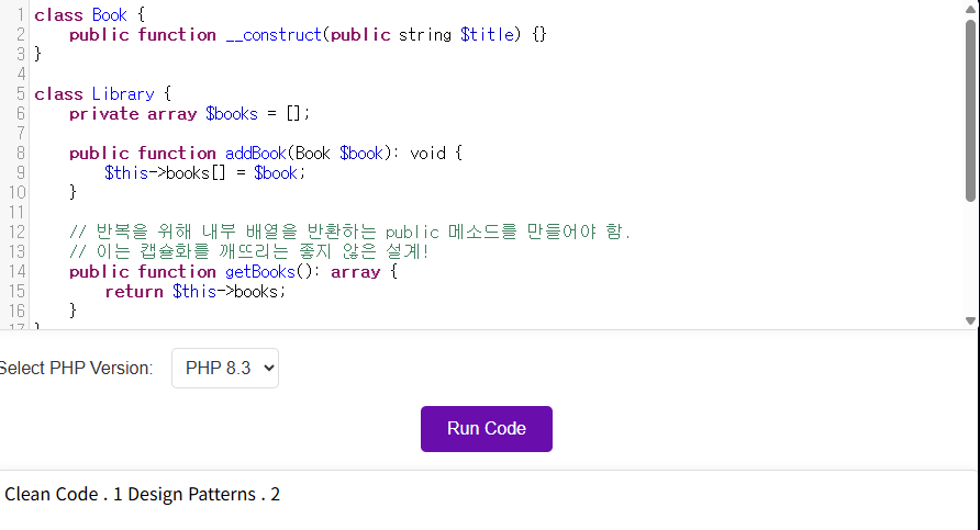 1. 캡슐화: 객체의 내부 데이터 구조(예: private 배열)를 외부에 노출하지 않고도 안전하게 반복 기능을 제공할 수 있습니다. foreach는 getIterator()가 반환한 이터레이터를 사용할 뿐, 원래 객체의 내부를 직접 건드리지 않습니다.