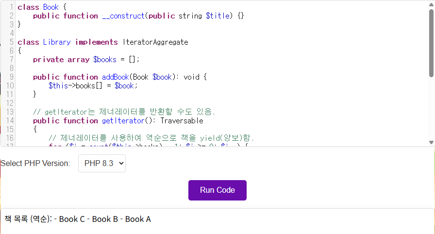 [PHP] IteratorAggregate - 루프에서 사용될 때 어떤 이터레이터를 사용할지 위임하기.