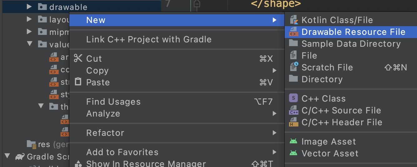 새로운 drawable을 만들어 줍니다.