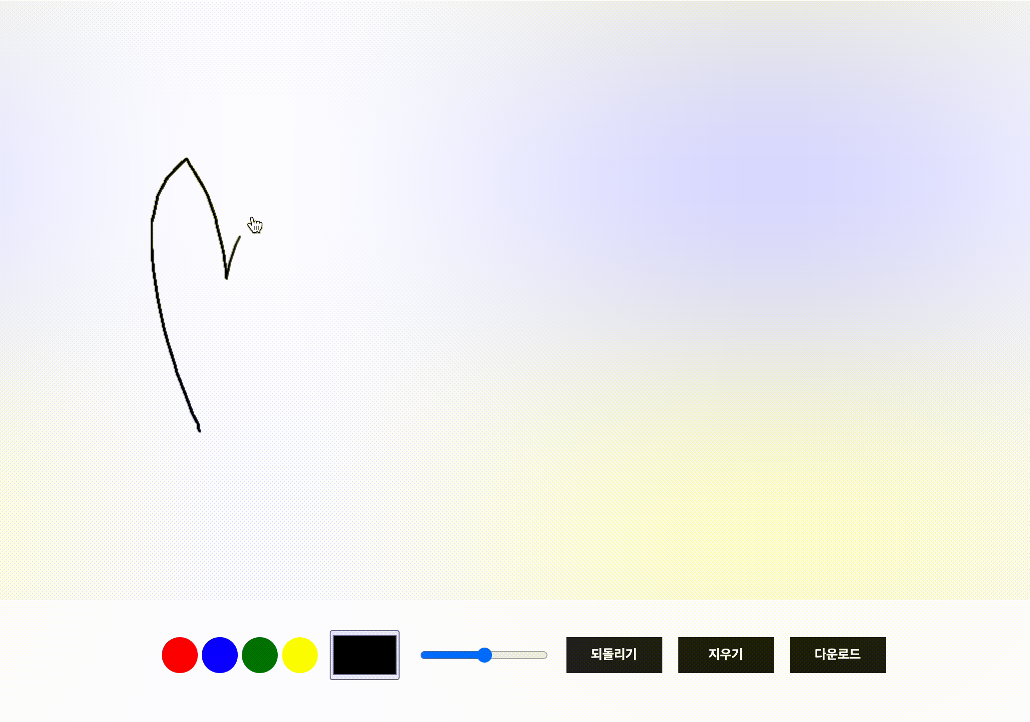 되돌리기, 지우기, 다운로드 하는 버튼으로 구성이 되어 있습니다.