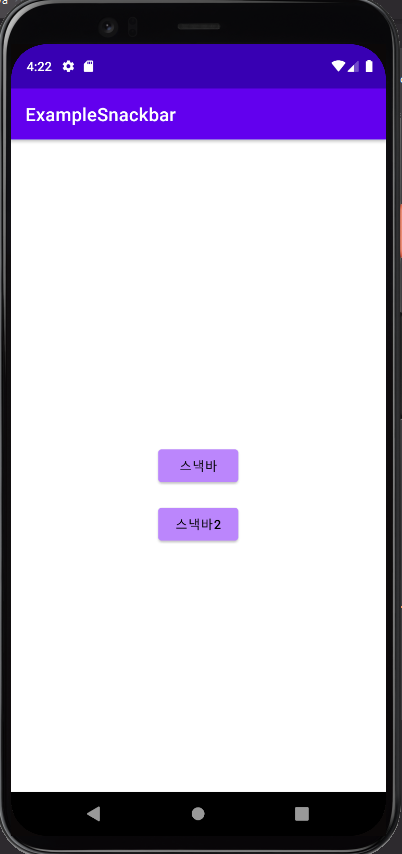 스낵바를 호출하기위한 버튼 2개를 생성해줍니다.