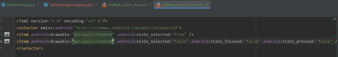 메뉴에 개수에 따라 resource파일 또한 동일하게 만들어주세요! 저는 총 3개(홈,채팅,마이페이지)의 탭 메뉴를 보여주기 위해 3개의 resource(tab_select_home , tab_select_chat , tab_select__mypage)파일을 만들었습니다