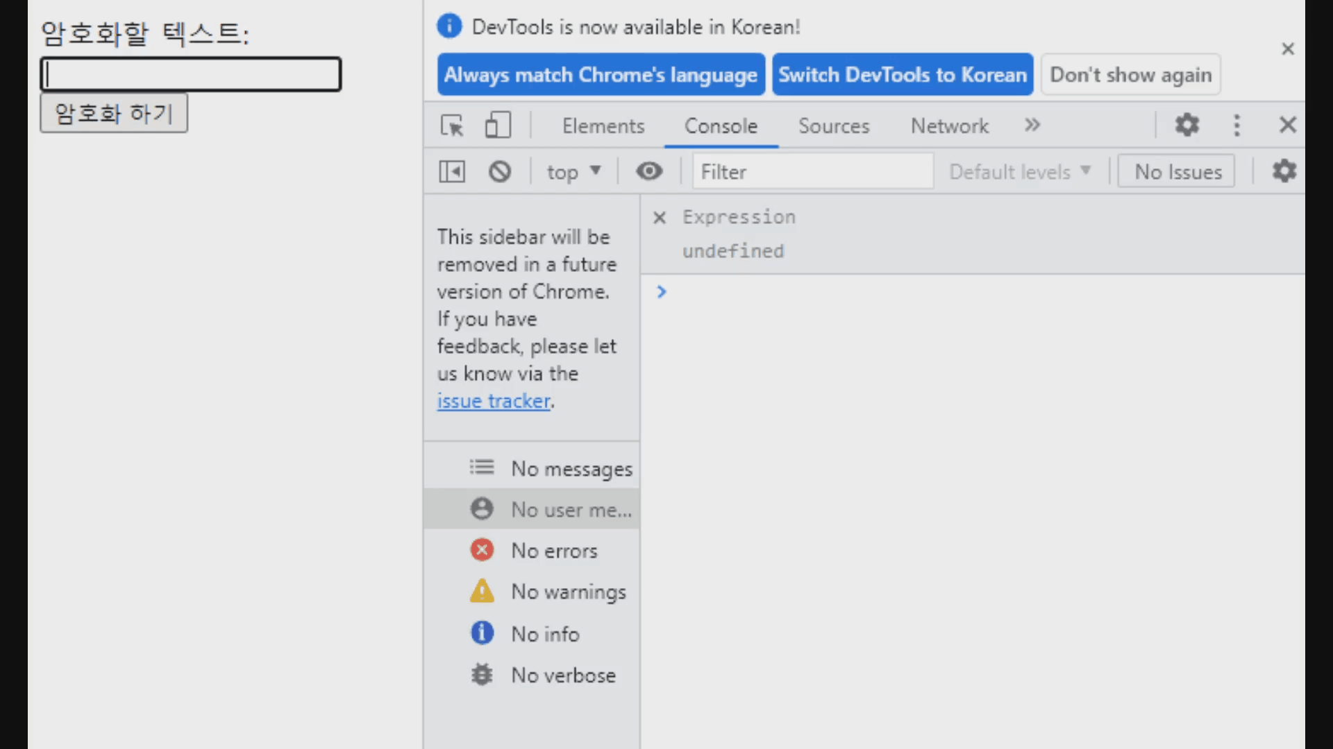 암호화 시킬 텍스트를 입력받을 input 태그와 암호화 동작을 실행할 버튼으로 구성합니다.