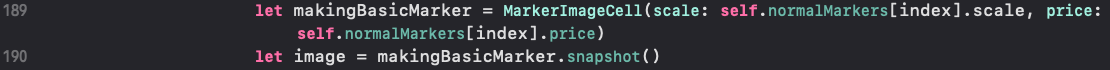 makingBasicMarker로 뷰를 만들고, 그 뷰뒤에 아까 커스텀한 snapshop()을 붙여주면 이미지로 변환이 됩니다.