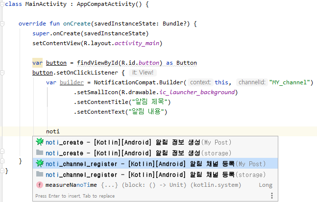 val channel_id = "MY_channel" // 알림을 받을 채널 id 설정