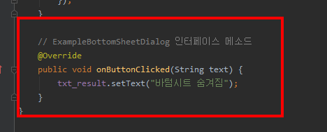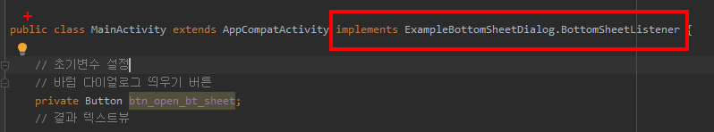 이제 메인 액티비티에서 인터페이스를 통해 바텀시트 프래그먼트와 연결해